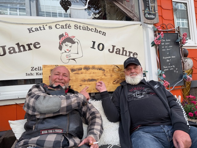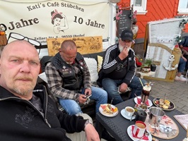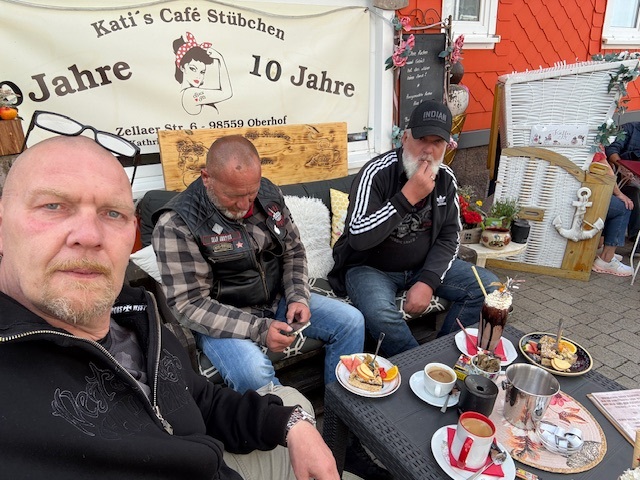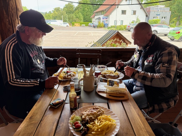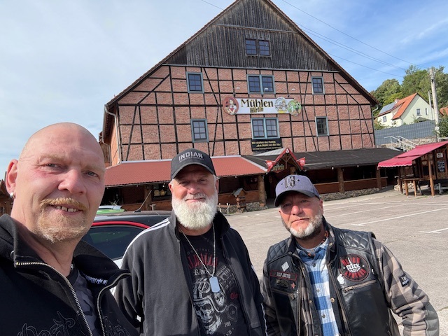 Nach etwas Fahrzeit sind wir dann in Dillstädt angekommen um Mittag zu essen. Stefan lotzte uns zur "Mühlenwirtin" . Also ich muss sagen, mega geil gemachte location mit viel Holz und echt kultiger Ausstattung. Ein wenig Glück hatten wir , da wohl ohne Reservierung kaum Platz gewesen wäre, war die Bedienung so nett und wies uns einen Tisch im freien (wie gewünscht) zu. Nach kurzem Check der Speisekarte .... na klar, ein Schweinesteak mit Würzfleisch musste es sein. War sehr lecker und der Preis mit knapp 20,00€ ging auch völlig klar. Also kurzum... empfehle ich gern weiter.