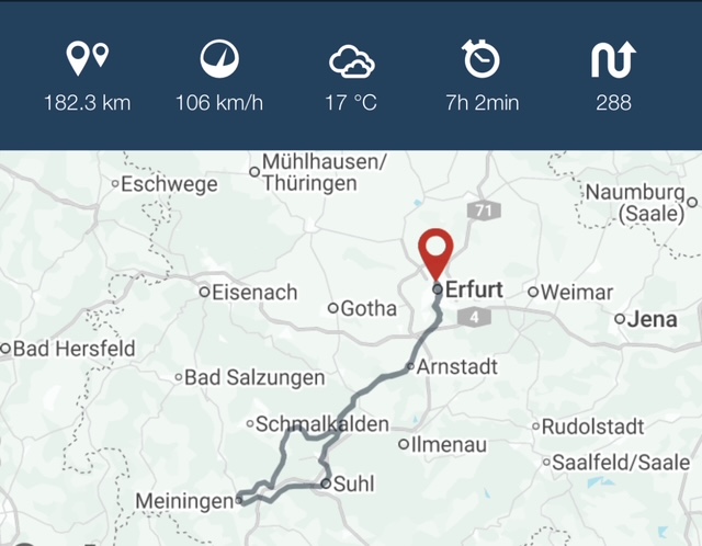 Heute ging es, wie so oft, 9.30 Uhr ....haltet euch fest, wieder mit Stefan zusammen los nach Arnstadt an die ARAL-Tankstelle um Steffen zu treffen. Da Stefan sich was die heutige Route angeht, etwas bedeckt gehalten hat, war es für Steffen und mich eine kleine Überraschung wo es hingehen wird. Das einzige was er verraten hat war, daß es nach Meiningen geht. Da wir ja nun nicht all zu kulturell bewandert sind, hatten Steffen und ich auch keinen Plan was uns erwarten könnte.