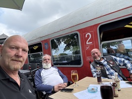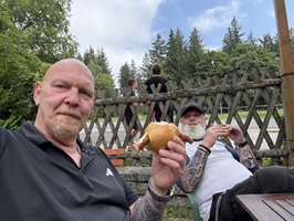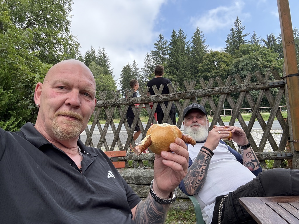 Dann ging es gemütlich nach Lichtenhain. Dort erwartete man uns an der Thüringer Bergbahn. Da gab es dann ein Würzfleisch und eine Cola als kleine Stärkung. Coole Location da dass Restaurant ein ausgebautes Zugabteil war.