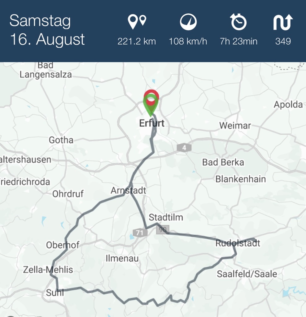 Endstation war dann der HAMC Erfurt. Die Fahrt dort hin war auch wieder sehr entspannt. Das Wetter spielte mit und eine Bratwurst war auch noch drin. Also haben wir unsere letzte Karte dort gezogen und dann unsere Liste der gesammelten Spielkarten abgegeben.