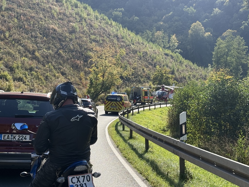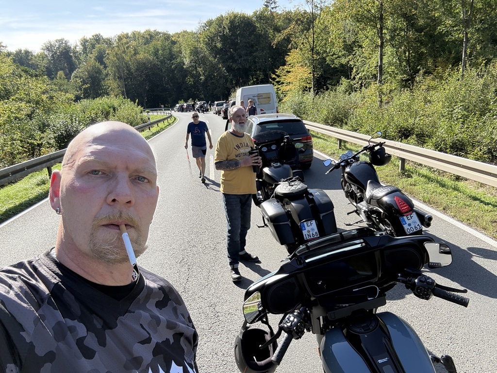 Danach ging es wieder Richtung Heimat. Allerdings wurde die Fahrt durch einen nicht so schönen Vorfall unterbrochen. Die Strasse wurde vorläufig gesperrt da sich wohl ein schwerer Motorradunfall ereignete bei dem auch ein Rettungshubschrauber zum Einsatz kam. Als wir an der Unfallstelle vorbei fuhren und das zerstörte Motorrad sahen, ließ sich nur erahnen wie heftig der Sturz wohl gewesen sein muss.